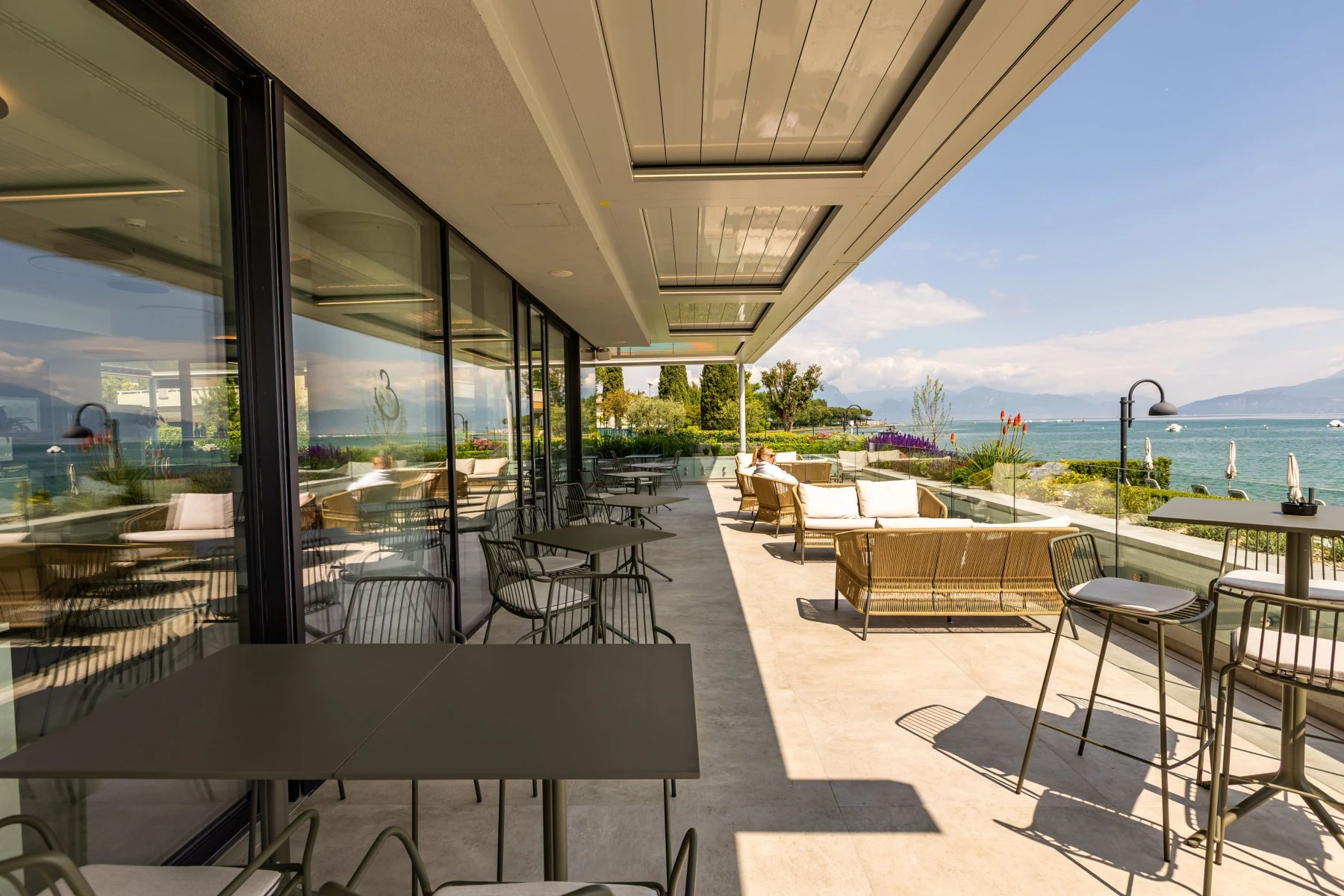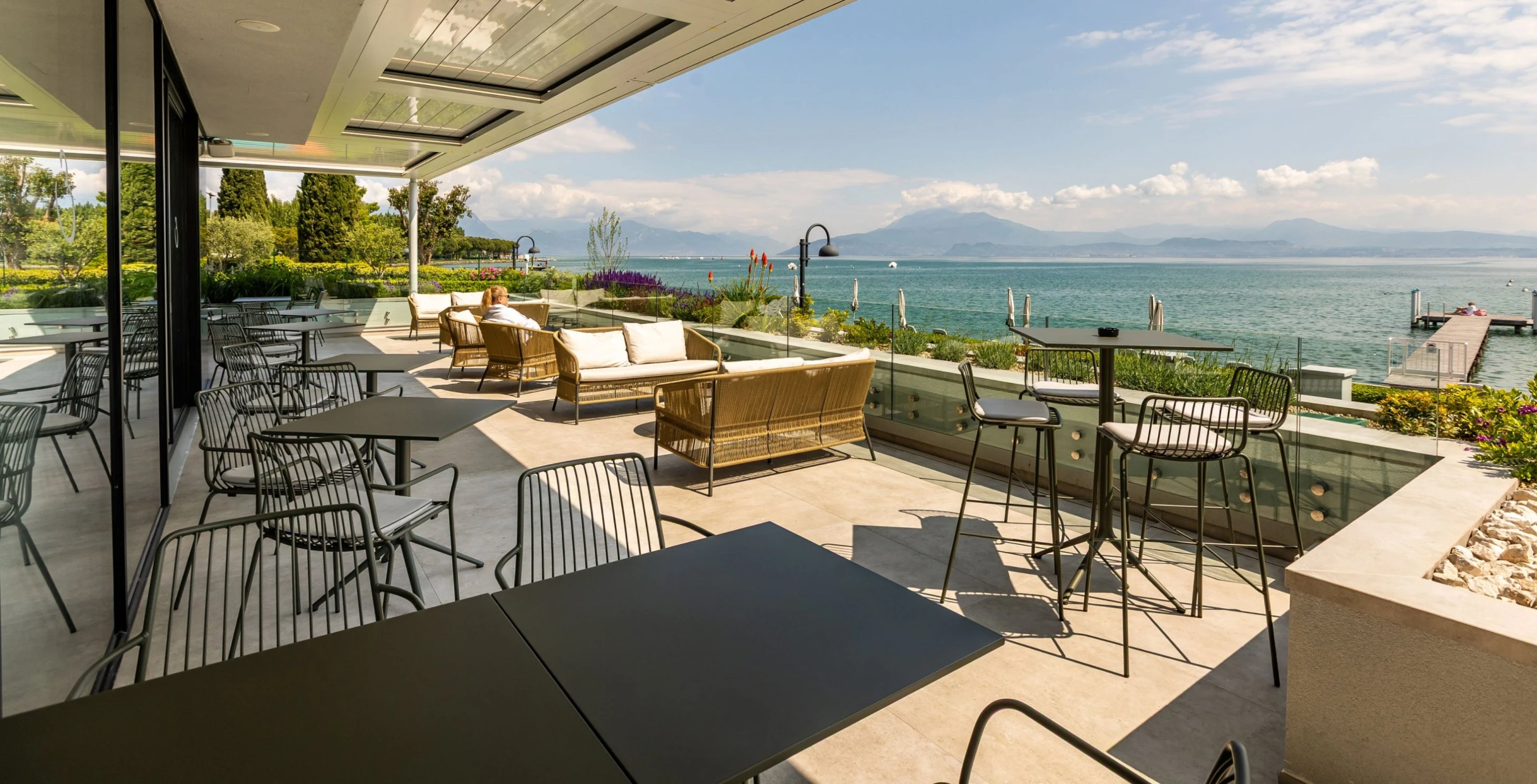 The upper floor of the Savoia bar has a panoramic terrace with breathtaking views of the lake. The rooftop is open to the public and the staff will be happy to serve you here too.