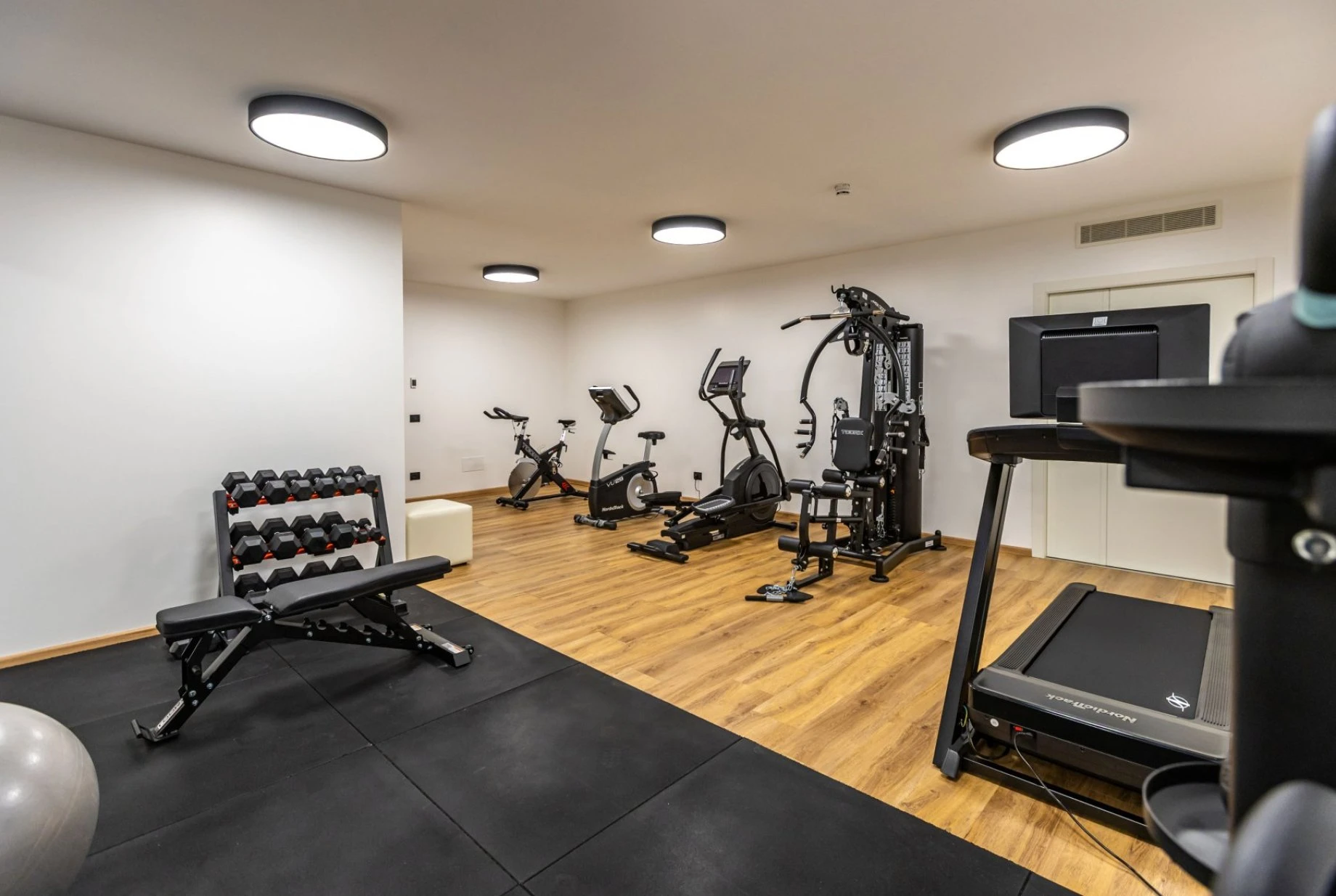L'hôtel Europa dispose aussi d'une salle de fitness d'environ 40 m² avec des appareils bien choisis pour un entraînement complet de cardio, de muscu et d'espace libre.