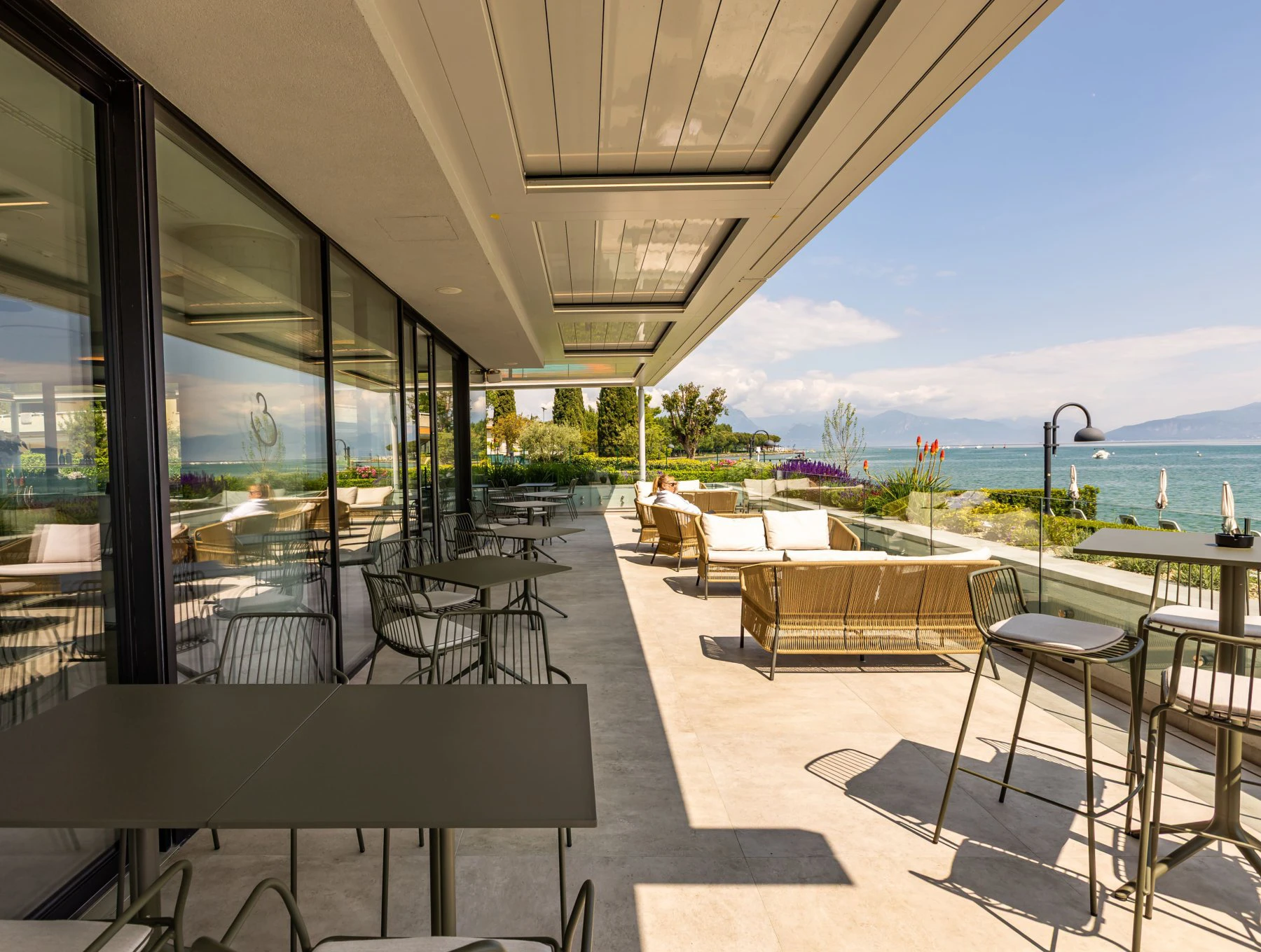 Disponiamo di un raffinato Ristorante e di un Bar con terrazza panoramica e vista sul Lago di Garda