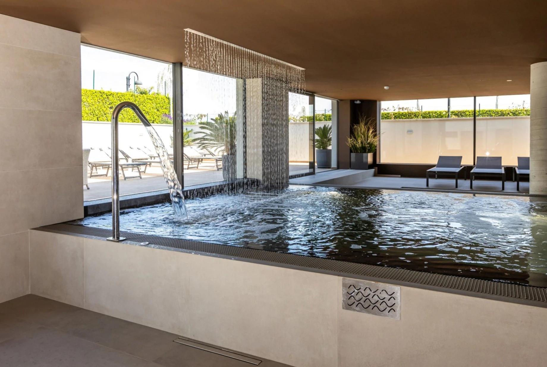 The indoor pool with Cannon jet and whirlpool features magnesium and potassium, minerals that guarantee an exceptional bathing experience.